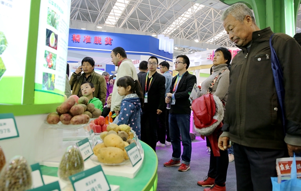 我校展区300多件展品中有植物新品种110项,涉及小麦、玉米、油菜、马铃薯、小杂粮主栽作物,以及水果、瓜菜、经济林作物等。其中包括38个“新秀”和“明星”,如今年才通过国审的“西农585”“西农529”两个小麦新品种,转让费超过300万元的省审小麦新品种“西农20”,继甘肃之后又在陕西审定的旱地小麦新品种“普冰151”,国审玉米新品种“陕单609”,籽粒直收、亩产过吨的首个省审机收玉米新品种“陕单636”,首个省审机收油菜新品种“陕油28”,还有“瑞阳”“瑞雪”“秦脆”“秦蜜”苹果,玫瑰系列彩色马铃薯,“七月鲜”红枣,农大迷香、金猕、郁香猕猴桃,“秦桃1号”“秦桃2号”和“秦超”桃优质新品种,“凤选1号”花椒,等等。
